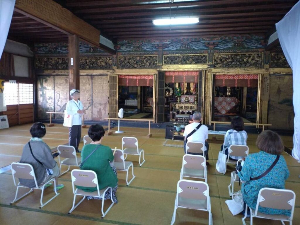 本日9月27日に、「富田林寺内町と商店街の魅力満載まち歩きツアー」が開催され、当別院にも参拝してくださいました。ツアーに参加されていた方々はガイドさんのお話に真剣に耳を傾けておられました。当別院の起源や歴史をお話しいただき、本堂も見学してくださいました。